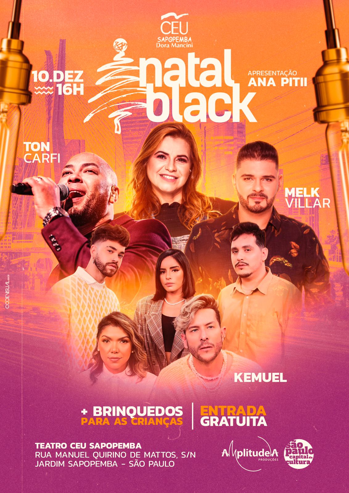 Natal Black está de volta, e no line-up deste ano, teremos atrações conhecidas do grande público como Ton Carfi, Melk Villar, Banda Kemuel e a apresentação que ficará por conta da Ana Pitti.